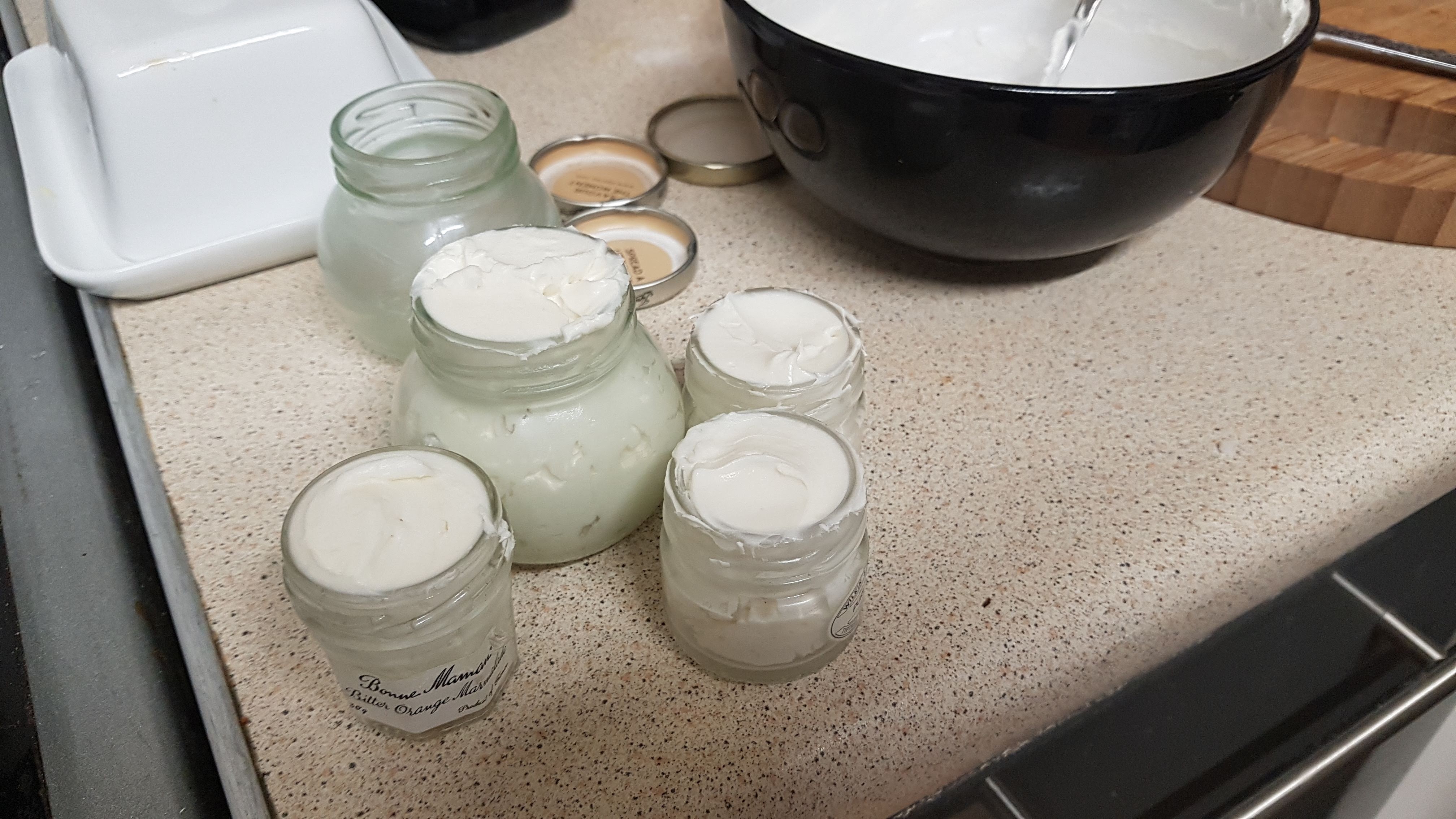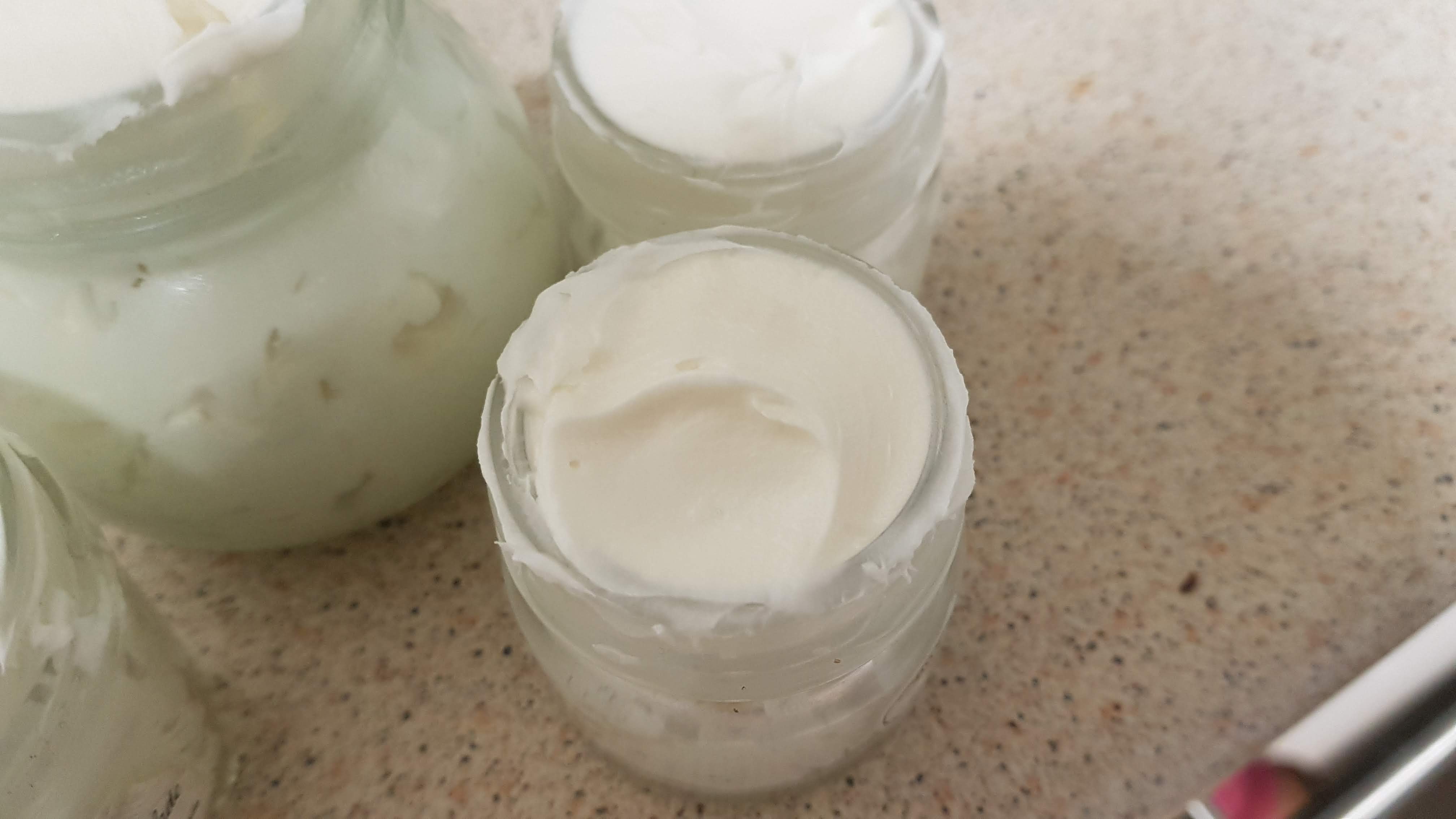 *please note; I have left this hardening in a bowl for several days, and after breaking it up with a spoon, have still been able to whip it into a cream, it just feels a bit grainy before applying. **I have also had my mixer blow up on me and have whipped this by hand with a whisk (think meringue making before electricity) and it still made a fine batch, it just took a while!